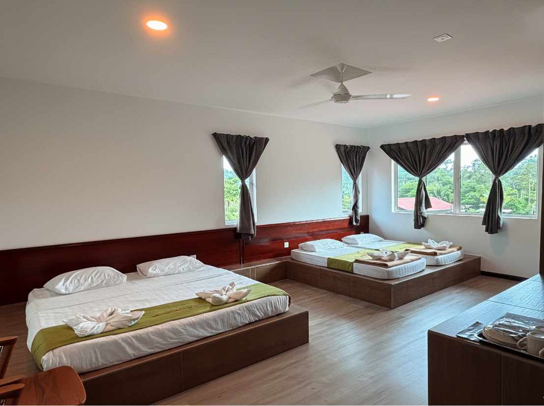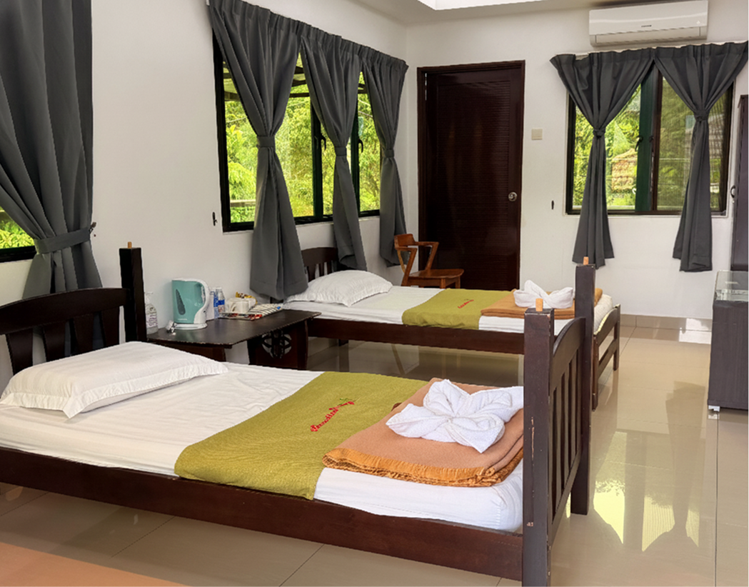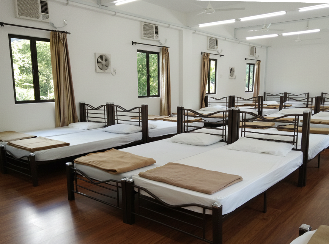 The Dormitory Room offers a neat and comfortable shared space, thoughtfully designed for larger groups who value both convenience and a restful environment.